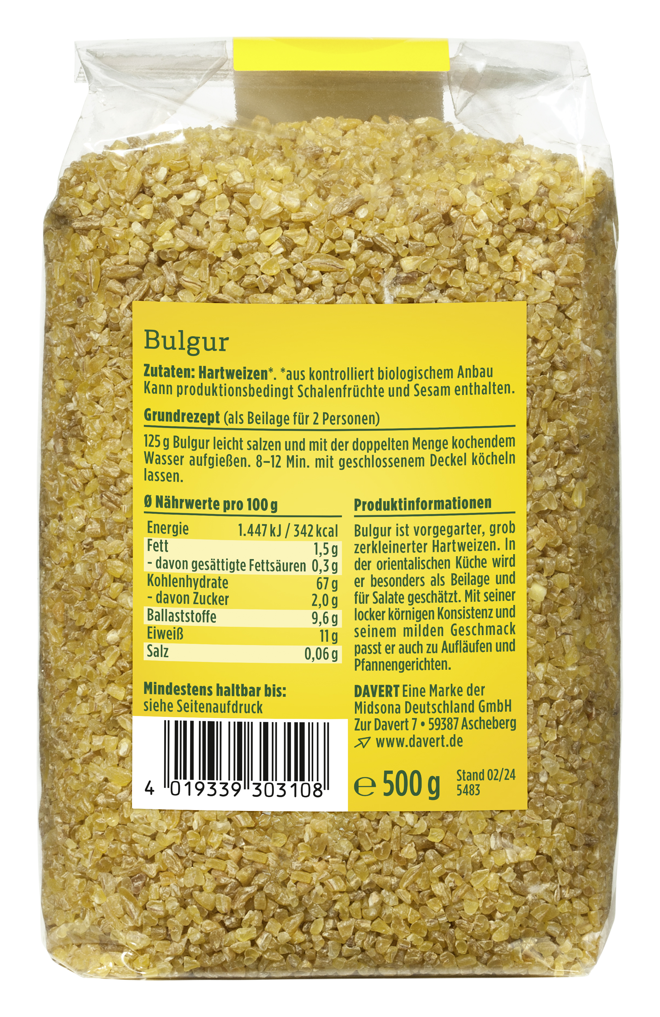 Bulgur ist vorgegarter, grob zerkleinerter Hartweizen. In der orientalischen Küche wird er besonders als Beilage und für Salate geschätzt. Mit seiner