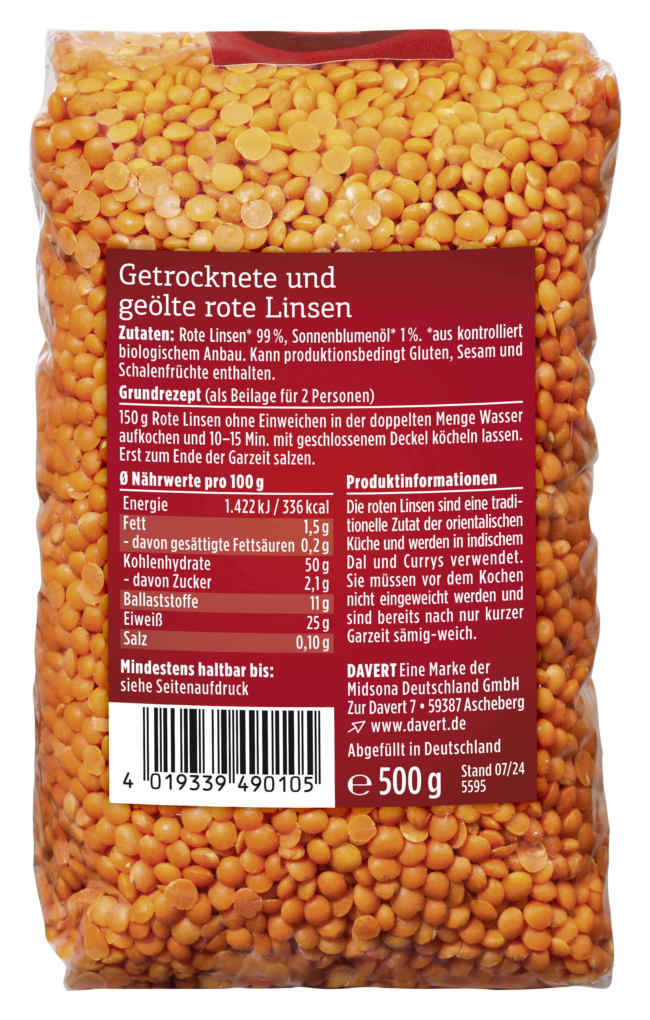 Rote Linsen 99%*, Sonnenblumenöl 1%*